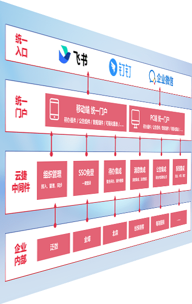 对协作平台提供支持服务,,支持企业应用与协作平台对接,,,,包含组织同步、、、消息集成、、、、待办集成等。。。支持目前主流的协作平台:钉钉、、企微和飞书。。。。